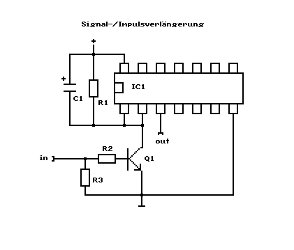 Diese Schaltung verlängert ein High-Signal (oder auch Impuls, wenn er nicht zu kurz ist) um
